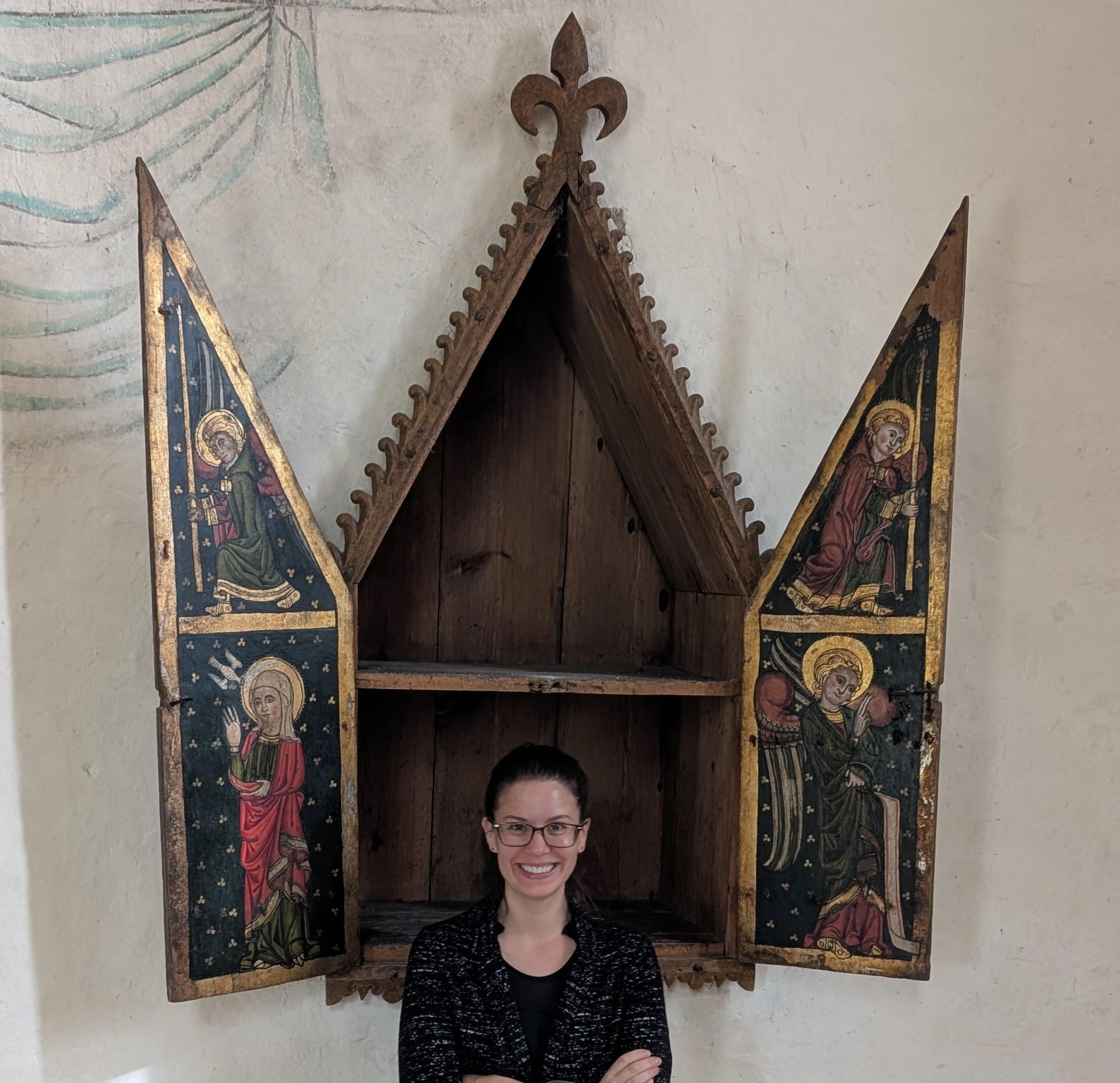 Congratulations to Cecily Hughes, fourth-year PhD candidate in medieval art, who traversed Scandinavia over the past few months to present at two international conferences and conduct dissertation research. In Reykjavik, Iceland, Cecily attended the 31st Congress of Nordic Historians where she delivered her paper “A Place to Shine: Darkness and Light in a Medieval Swedish Sacrament Niche.” Crossing the Baltic Sea to Helsinki, Finland, Cecily discussed “The Measure of a Saint: Size, Movement, and Meaning in St. Olaf Pilgrim Badges,” at the 14th triennial NORDIK Conference of Art History in the Nordic Countries. On the Swedish island of Gotland, Cecily visited twenty-two medieval churches, documenting their vivid wall paintings, art objects, and architecture.